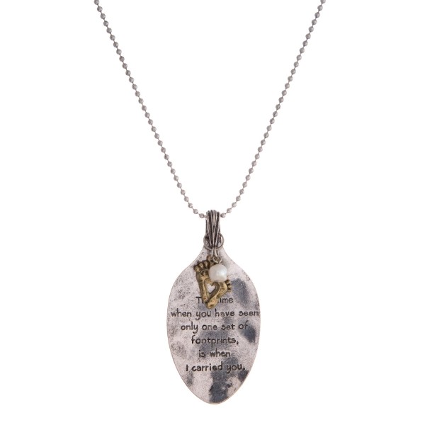 Burnished Silver Tone Necklace With A Spoon Pendant Stamped With A