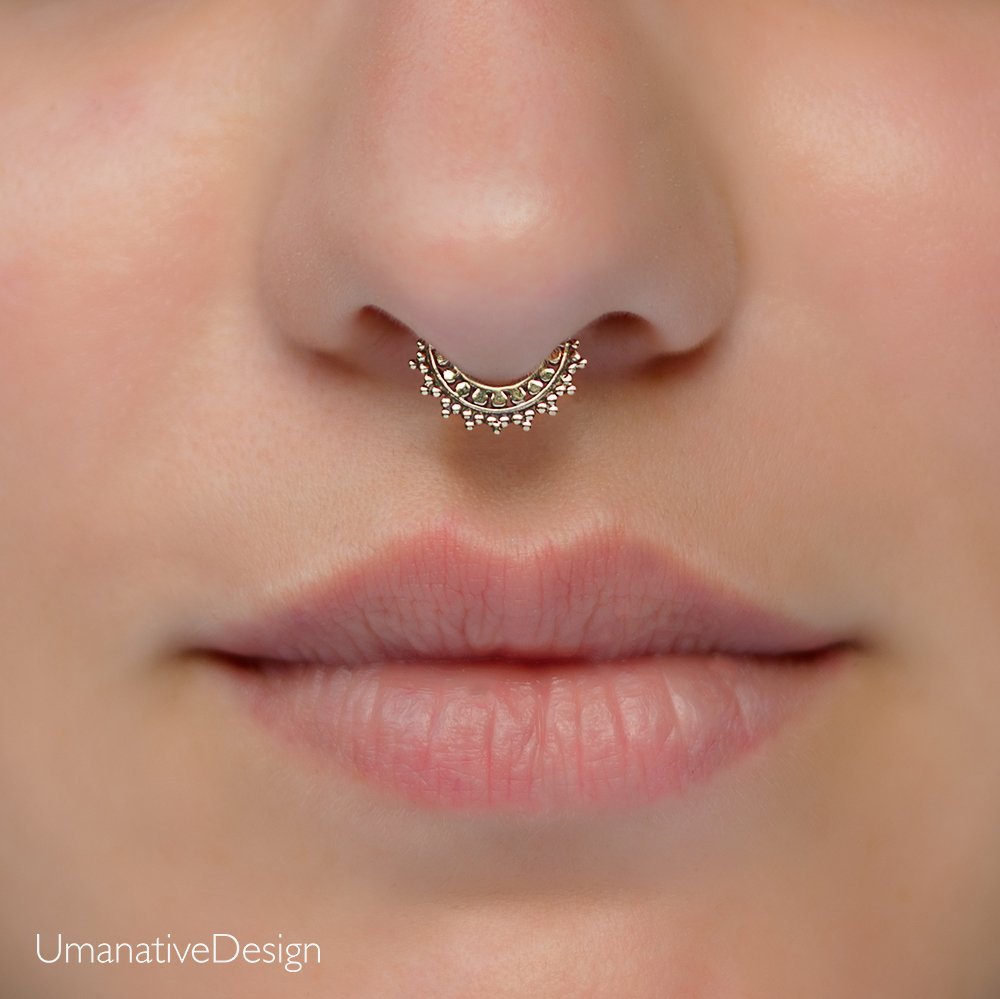 925 Sterling Silver Seamless Septum Ring Indian Design 5 16 18g