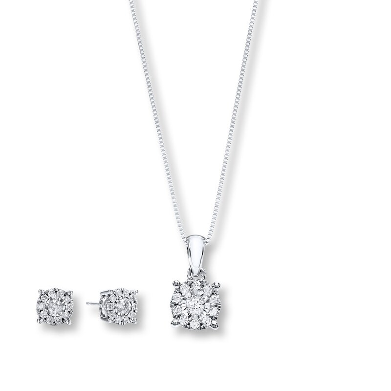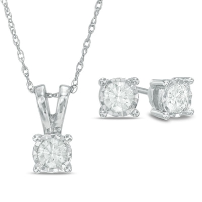1 4 Ct T W Diamond Solitaire Pendant And Earrings Set In 10k