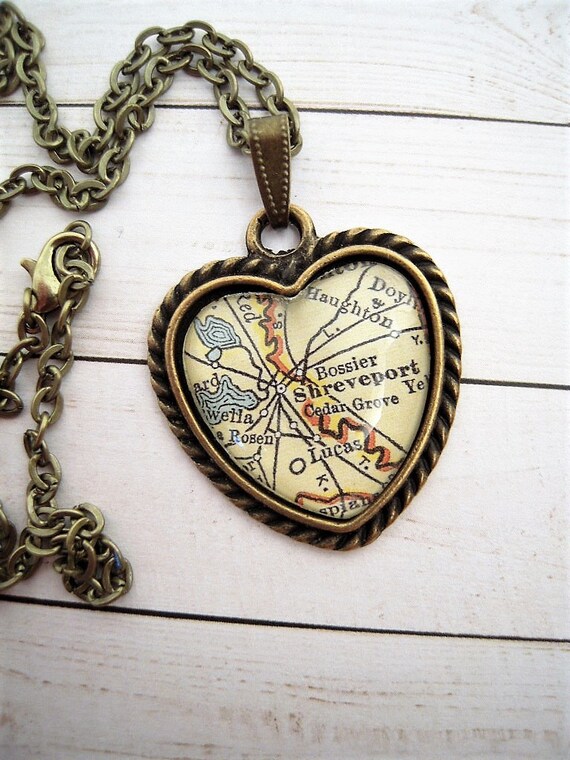Custom Map Jewelry Shreveport Louisiana Vintage Heart Shape Etsy
