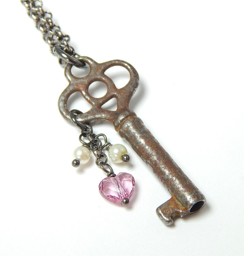 Skeleton Key Necklace Heart And Key Necklace Swarovski Etsy