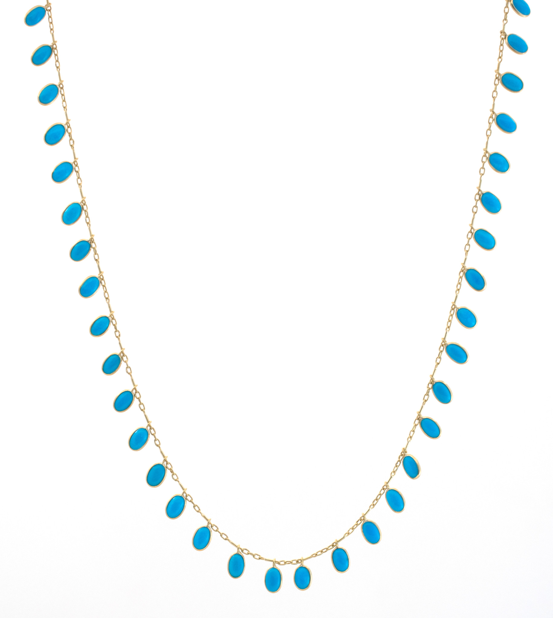 Oval Sleeping Beauty Turquoise Fringe Necklace Saffron Jewelry