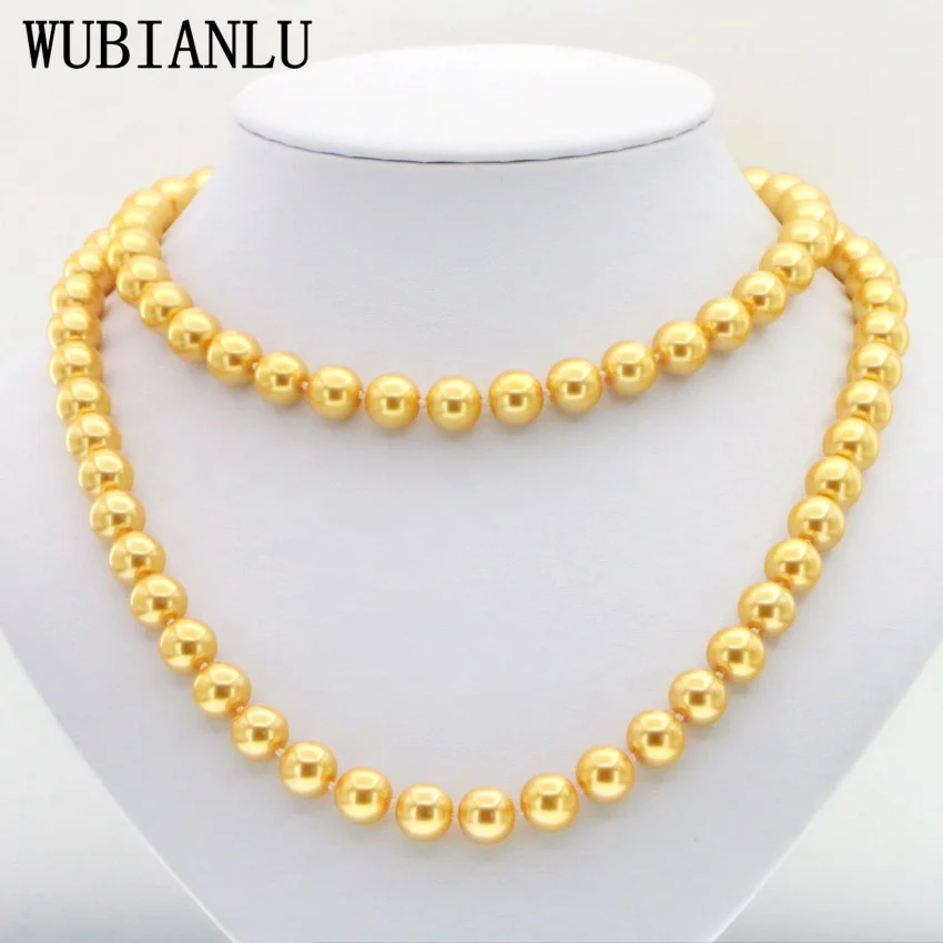 Wubianlu 10mm Gold South Sea Shell Pearl Necklace Fashion