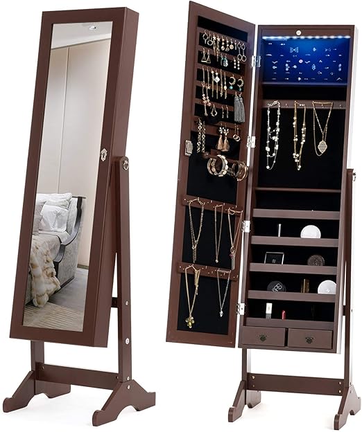 Amazon Com Mecor Mirror Jewelry Organizer Led Standing Jewelry