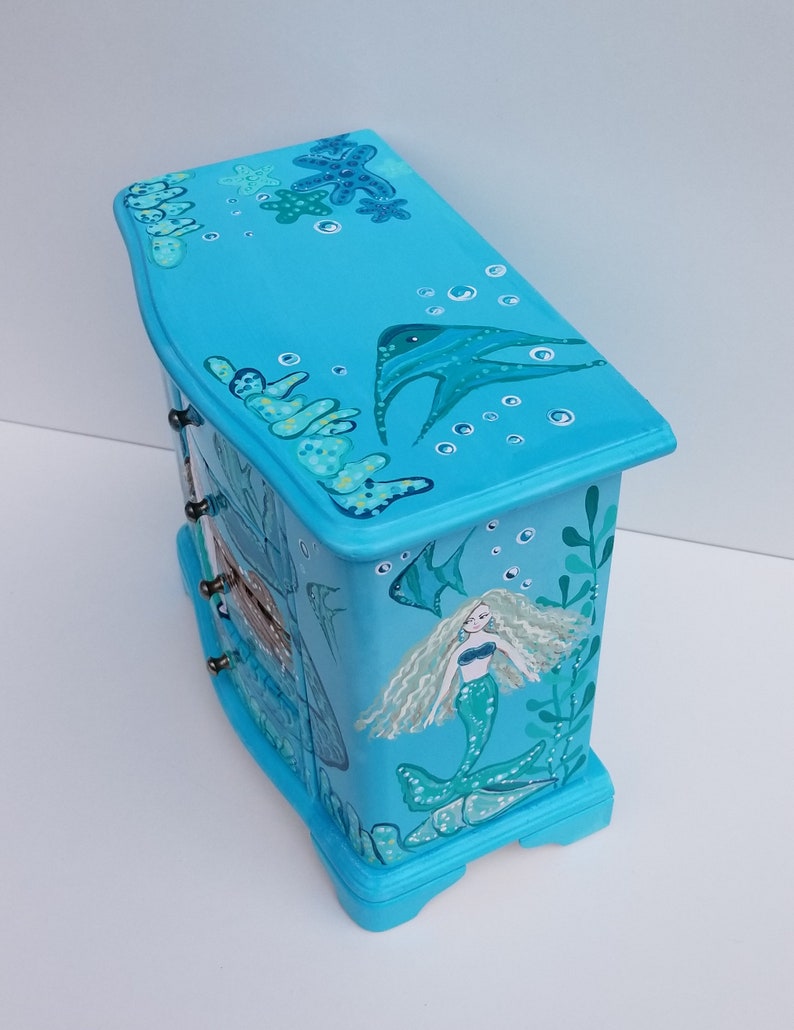 Music Teal Mermaids And Dolphin Jewelry Box Wood Jewelry Box Etsy