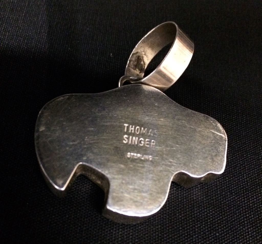 Signed Thomas Singer Sterling Silver And Turquoise Buffalo Pendant