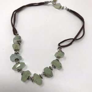 Handmade Necklace Green Stone Brown Chain Trendy Chunky Pretty