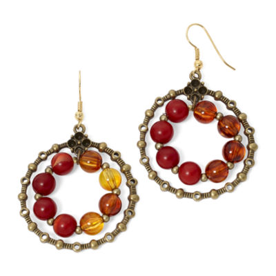 Aris By Treska Red Bead Circle Drop Earrings