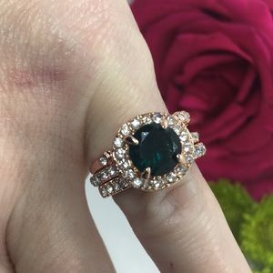 Rec Jewelry Triple Rings Gpemerald Green Round Center Stone