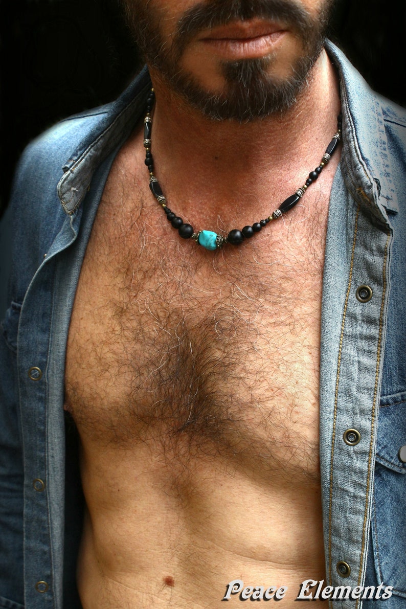 Turquoise Necklace For Men Black And Turquoise Mens Jewelry Etsy