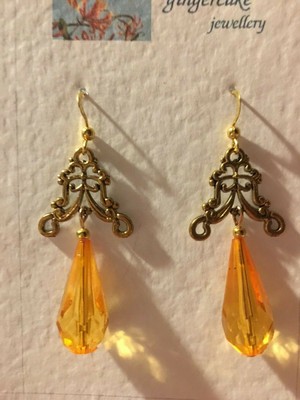 Orange Victorian Style Filigree Earrings Gold Plated Acrylic