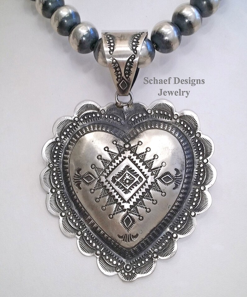 Native Navajo Hand Stamped Sterling Large Pendant By Vincent