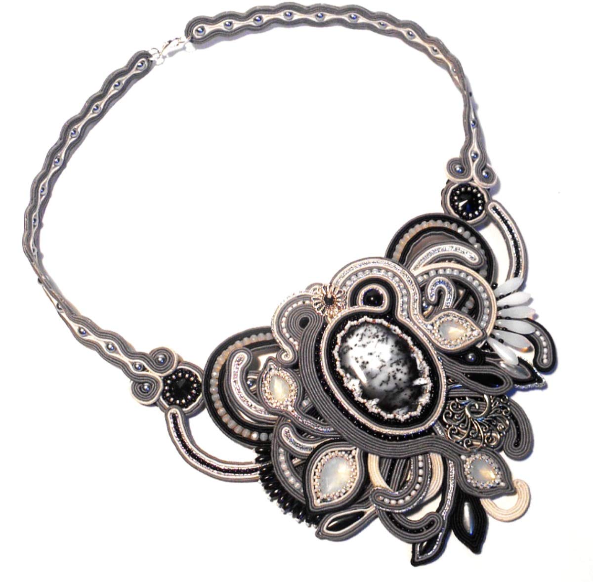 Black And White Beaded Statement Necklace Vintage Color Me Red