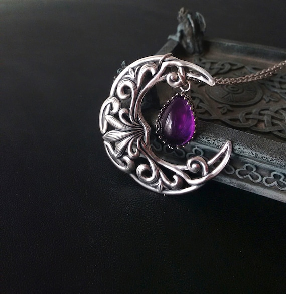 Celtic Amethyst Necklace Silver Witchy Jewelry Celestial Etsy